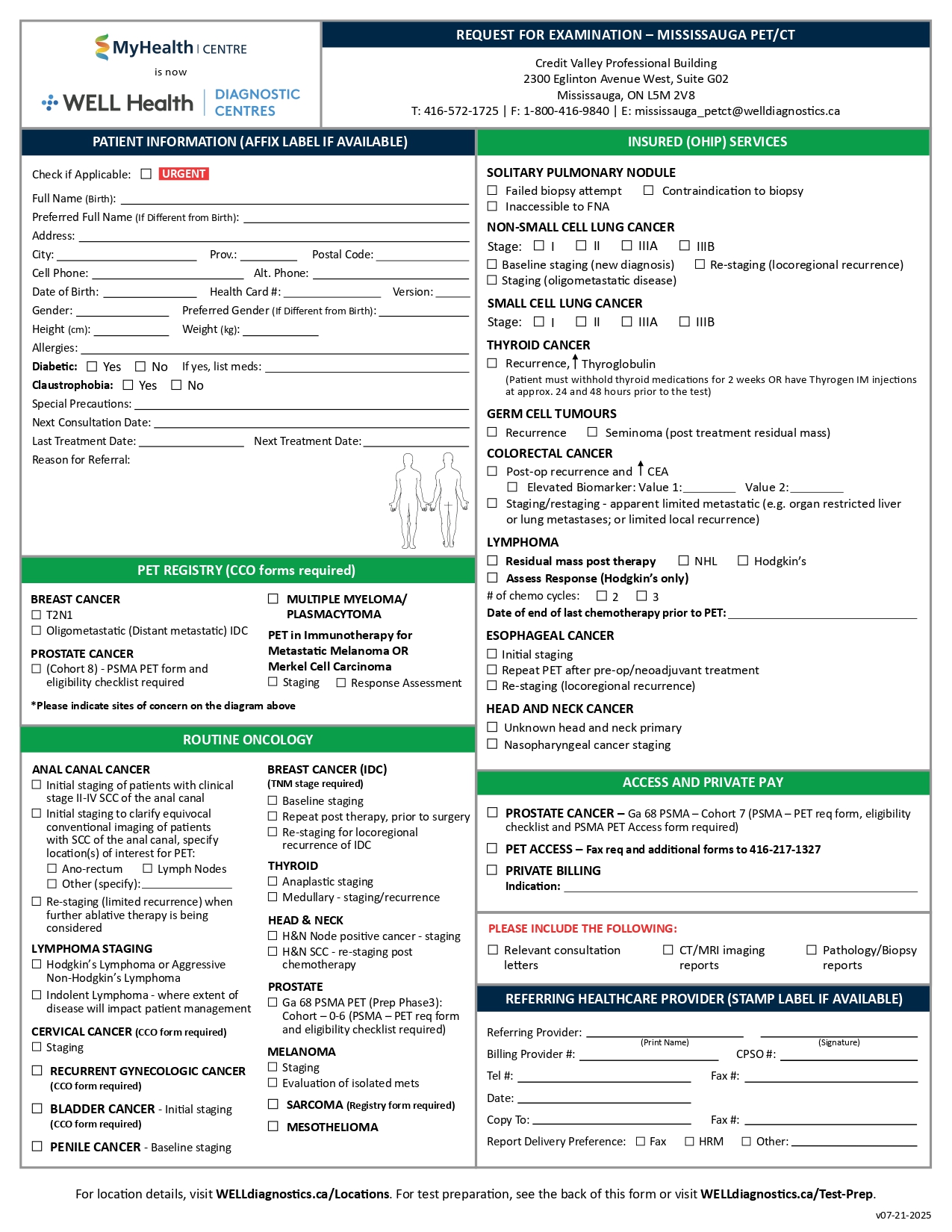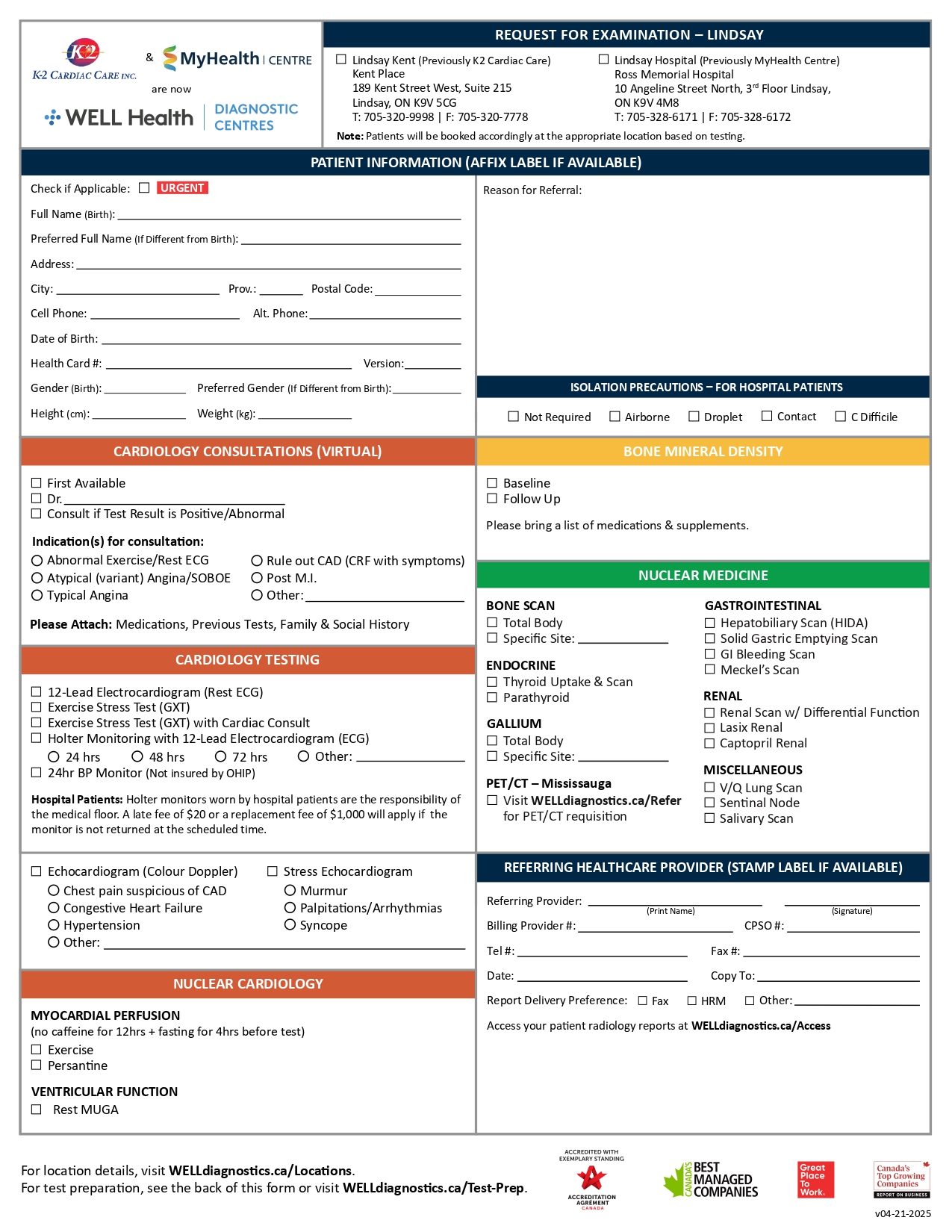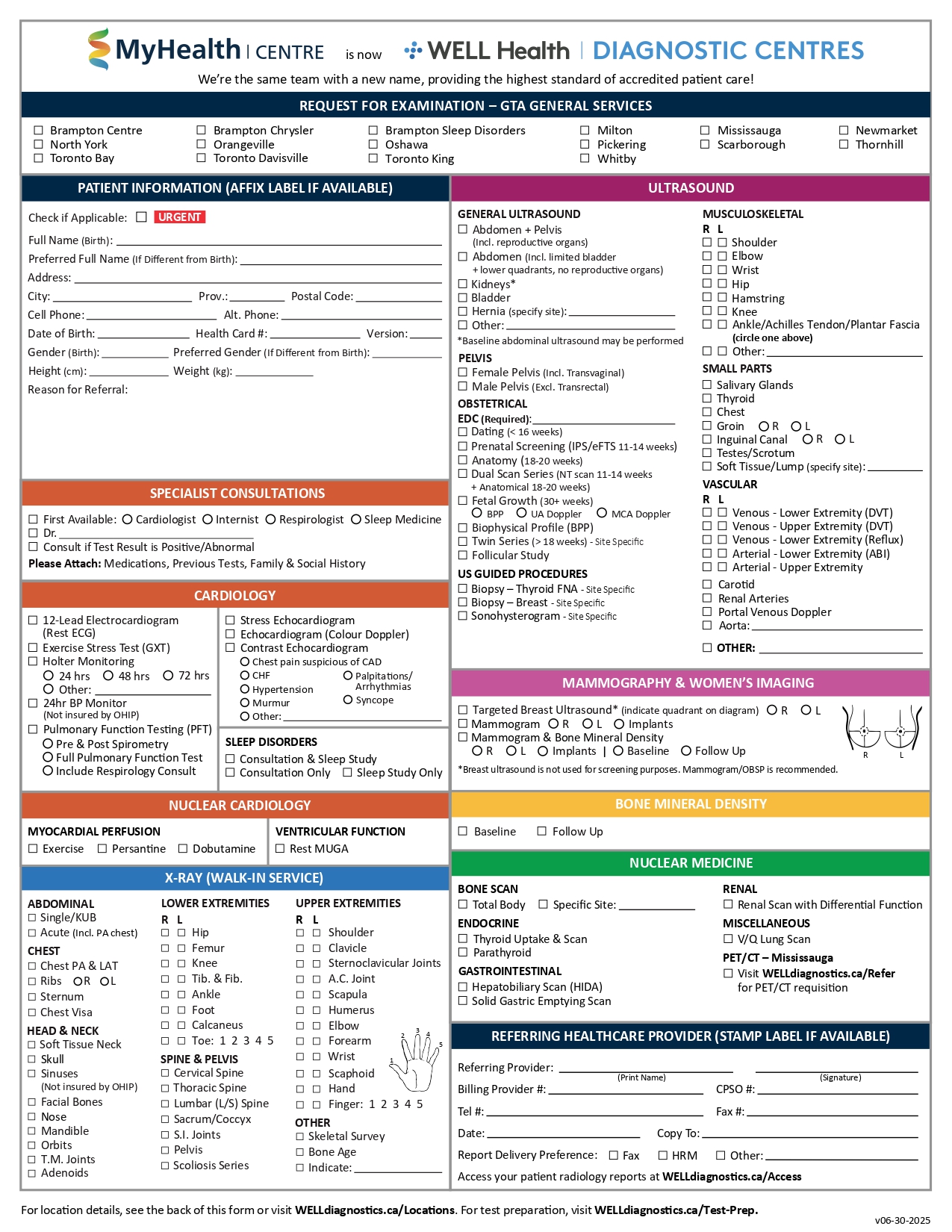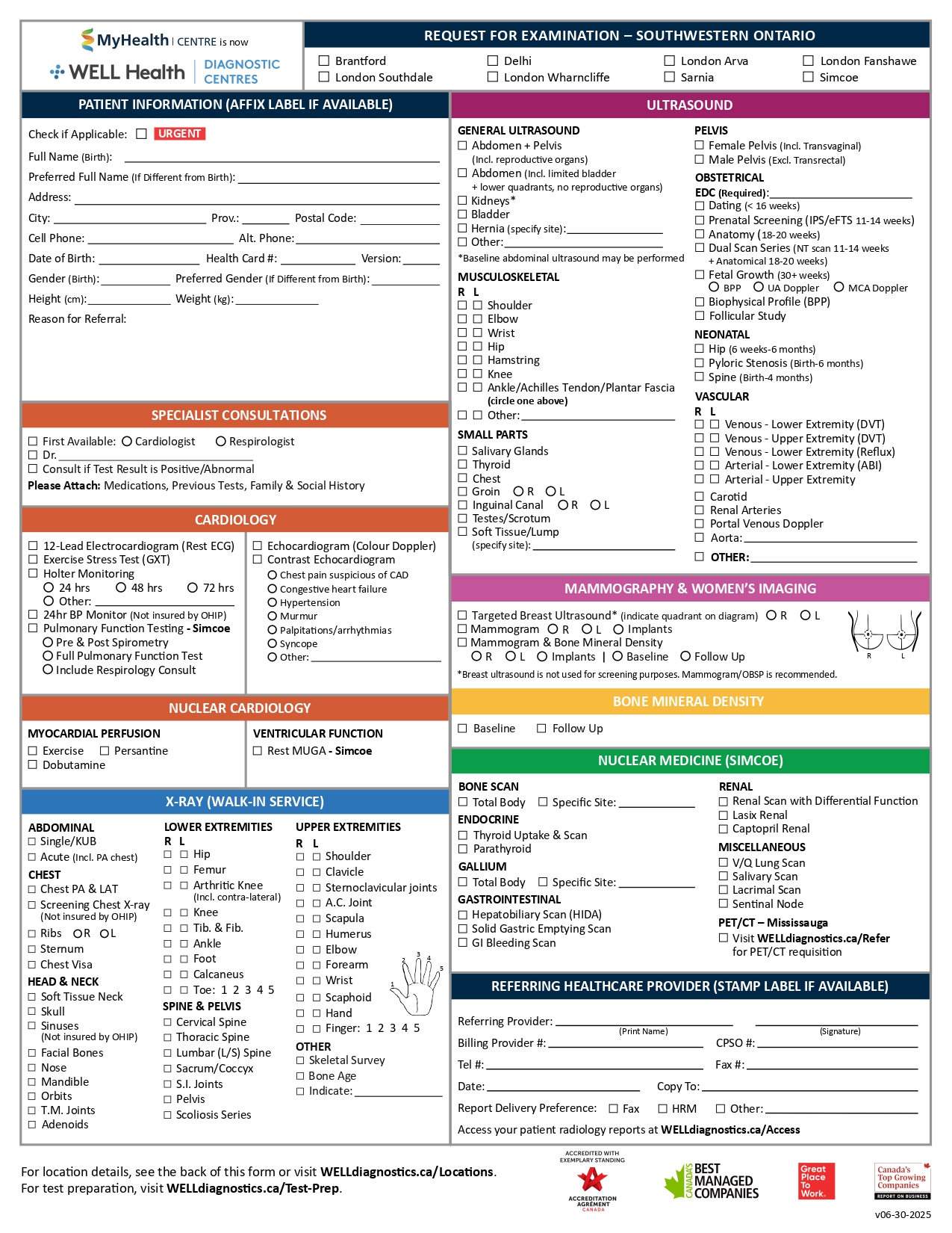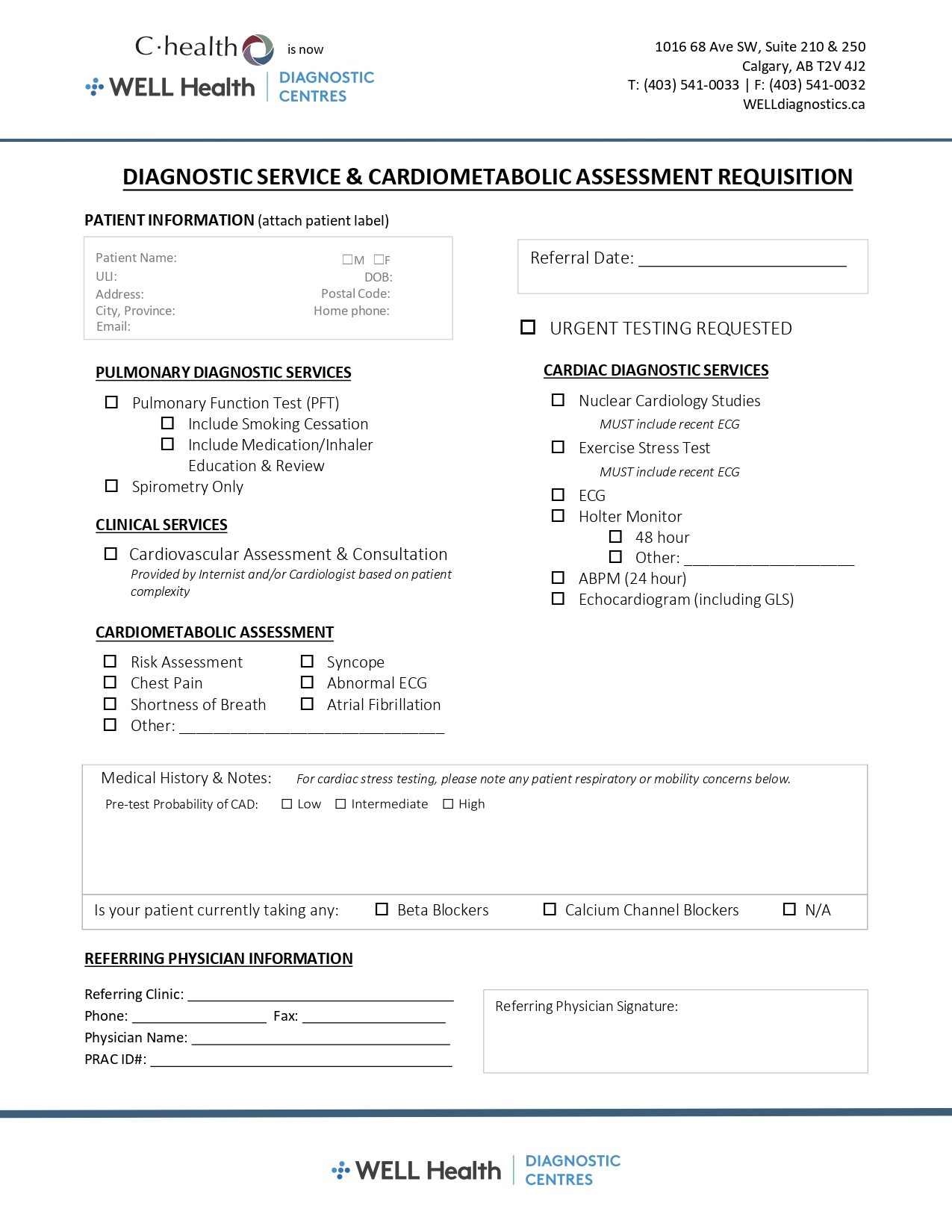 If you are a patient, please click on your region below to download a PDF requisition and obtain a signed copy from your referring healthcare provider*. Then CLICK HERE to find your nearest WELL Health Diagnostic Centre with contact information.