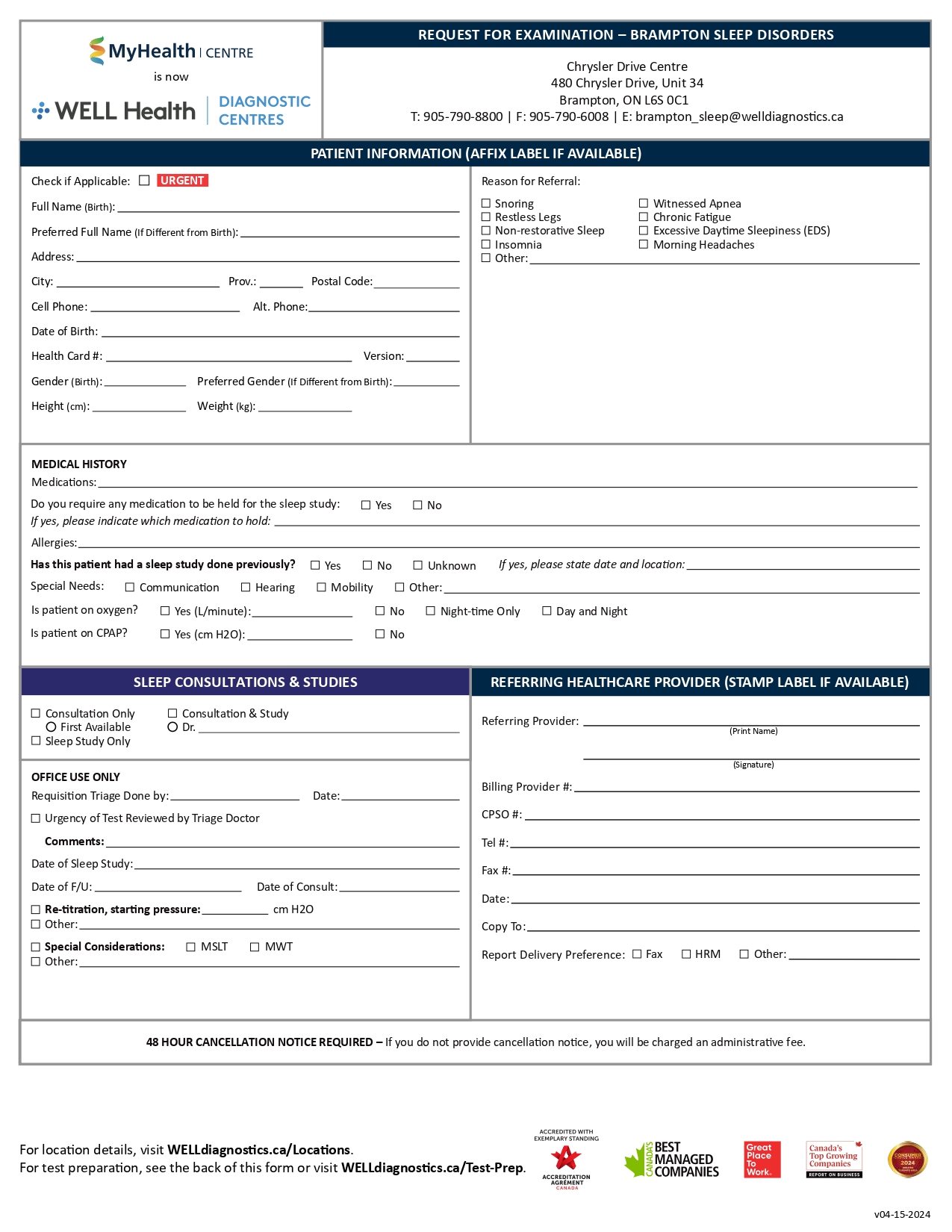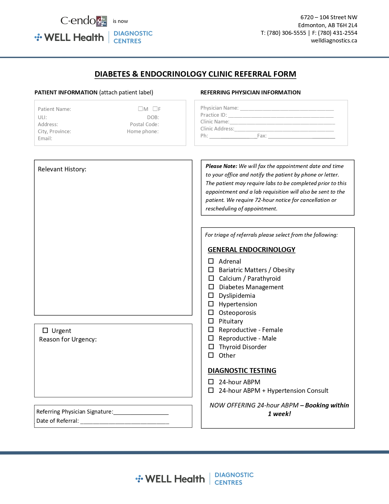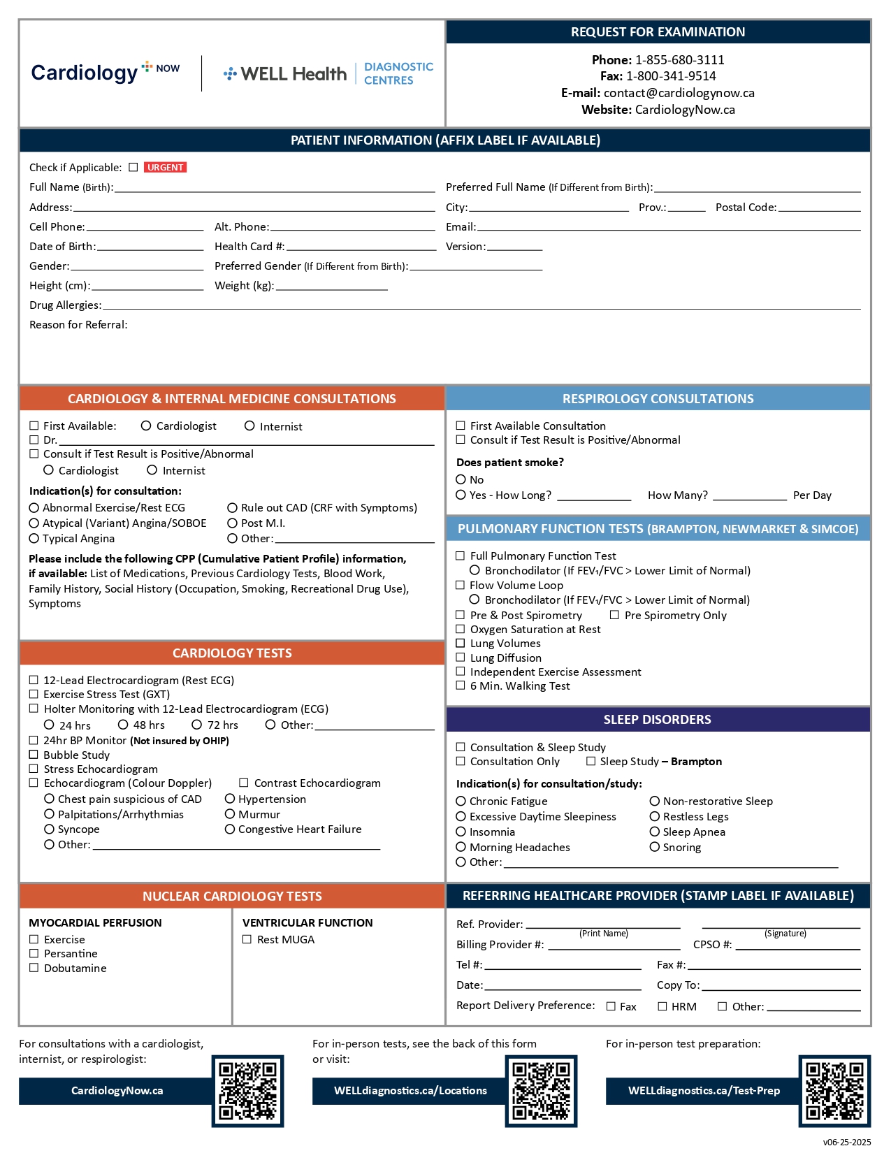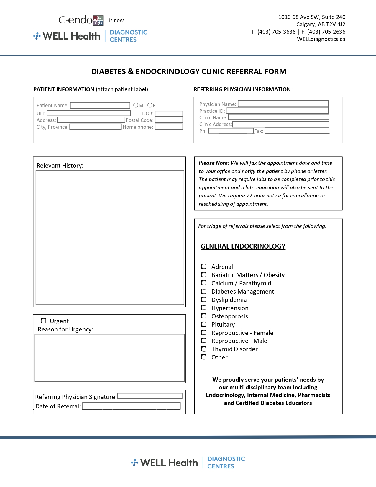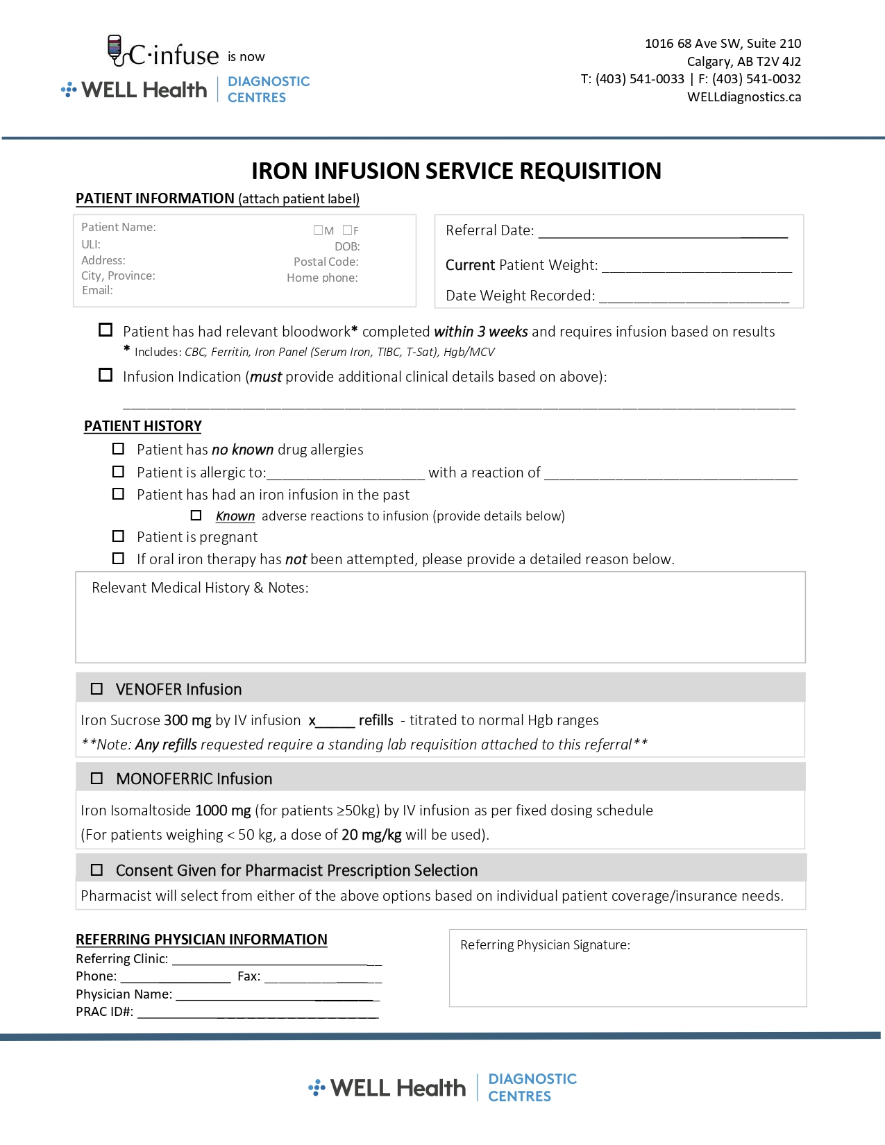 If you are a patient, please click on your region below to download a PDF requisition and obtain a signed copy from your referring healthcare provider*. Then CLICK HERE to find your nearest WELL Health Diagnostic Centre with contact information.