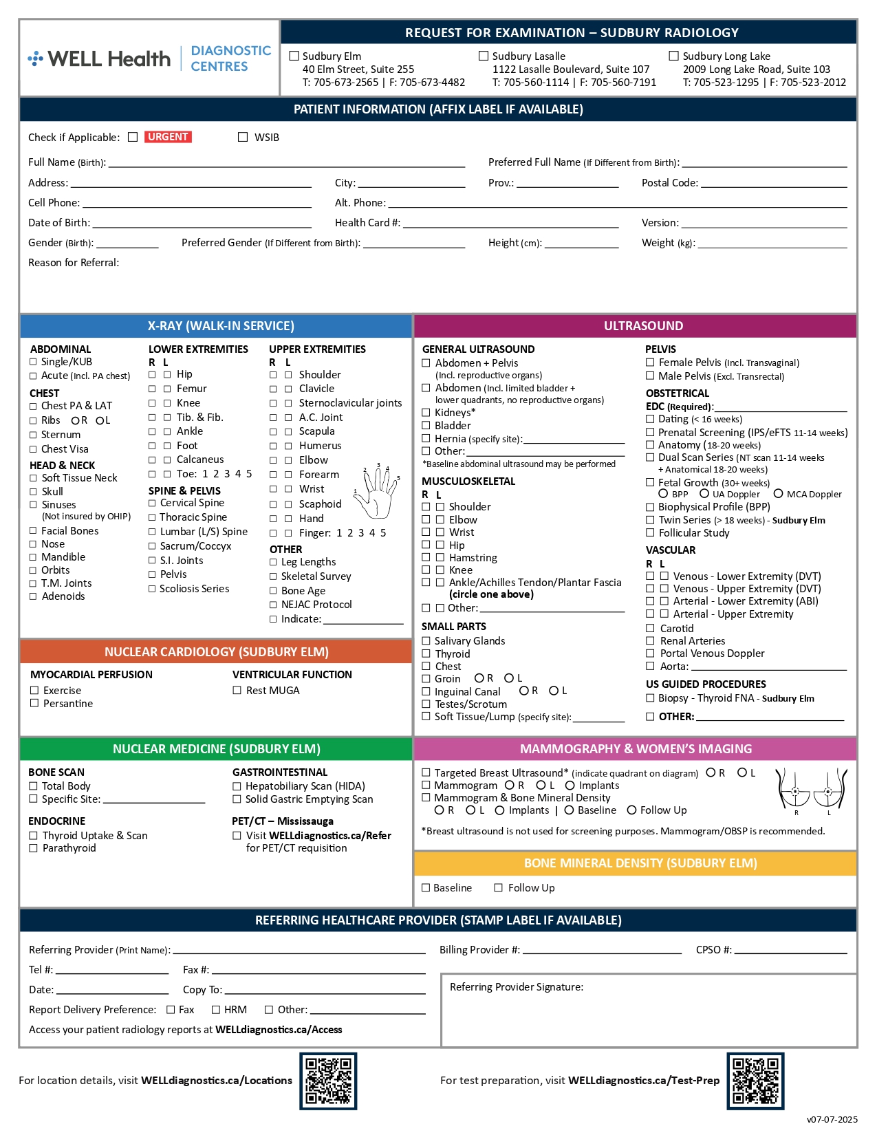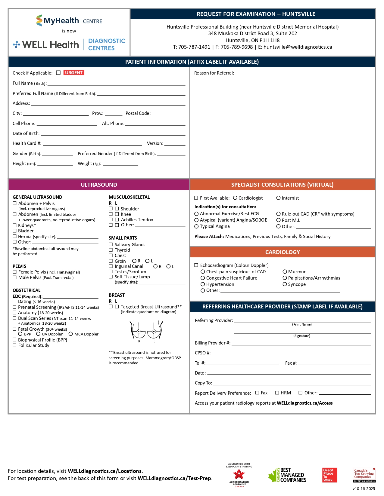 Click on your region below to download a PDF requisition, then CLICK HERE to find your nearest WELL Health Diagnostic Centre with contact information.